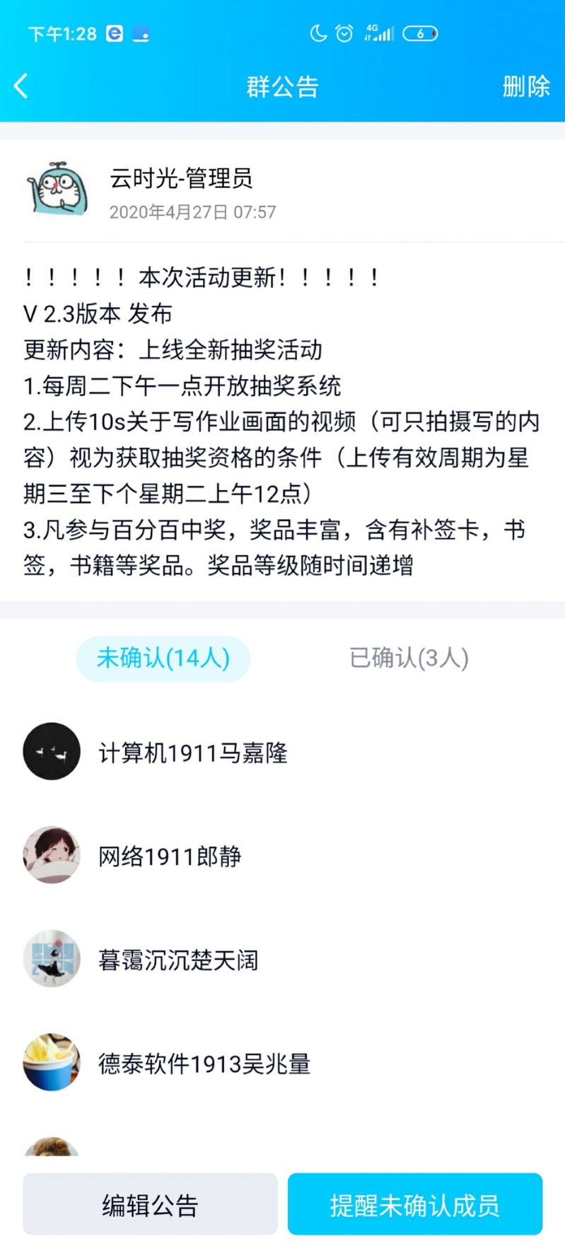 在活动进行当中,网络1911李子倩,计算机1912丁彦雄等同学还自主上传自己的学习笔记、学习记录等,目前累计收到超过40份。