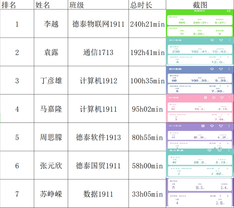 根据统计数据显示,参与同学共约90名,其中涵盖太阳成集团tyc7111cc17级至19级员工,同时也吸引了其他学院员工参与其中,平均每人每周自主学习时间超过10小时,累计总时长超过50小时,所有同学总时长超过1000小时。其中考研备战组的同学们每周平均在线自习时间超20小时,四六级备考组每周平均在线自习时间15小时,自主学习组每周平均在线自习时间12小时。