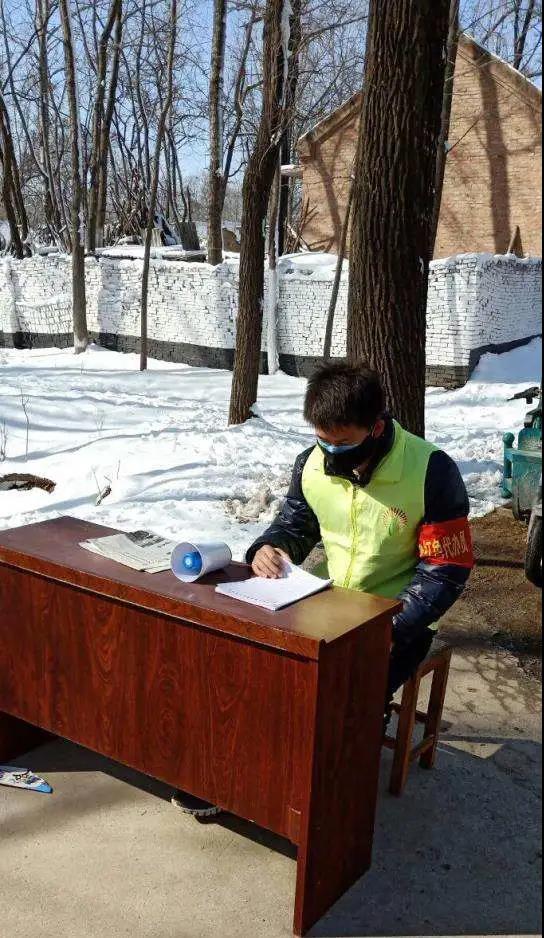 面对突如其来的疫情,寒假返乡后,我积极响应老员工回乡战疫情的号召,主动请缨,加入到本村组建的抗击疫情志愿服务队当中,保护村民的生命健康安全。我所在的村子村民达两千多人,规模较大,早晚一次的步行绕村巡逻至少需要一个小时,赶上下雪的时候,道路泥泞,手脚冻得生疼,鞋子和裤子也都是泥,一不小心就会摔倒,我和小伙伴们都丝毫不退缩,迎难而上。巡逻完毕后卡口执勤,在一个简易的大棚中开始一天的防控工作,逢人必测,逢车必查,全天候坚守。对外来人员和车辆进行排查,登记来处、目的地、车牌号、联系方式等信息;对进出人员进行体温测量,体温异常者进行劝返;进村宣传疫情防控知识,解答群众对疫情的疑惑等,用青春为村民筑起防疫长城。在防控疫情的特殊时期,虽然不能奔赴疫情防控前线,但希望能尽自己所能为家乡服务,为村民保驾护航。