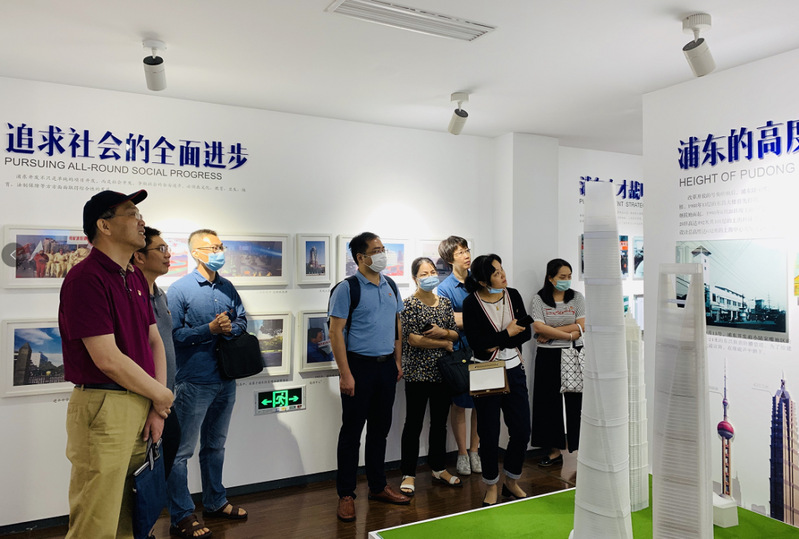 走进陈列馆,序厅正面电视墙上播放着浦东开发开放的纪录片,两侧分别是习近平总书记关于浦东开发开放重要意义的讲话,以及“浦东开发开放从这里开始”的大字。党员们在一楼展厅身临其境地体验到浦东的创业史,30年前办公条件虽然艰苦,却掩盖不住开拓者们披荆斩棘、只争朝夕的魄力与干劲。二楼展示了浦东开发开放创造的成绩,无论是从1990年到2020年每年一幅陆家嘴崛起的对比图片,还是东昌路消防瞭望塔与陆家嘴多座高楼大厦的“最萌身高差”模型,参与党员均感受到了浦东建设的高度与发展的速度。
