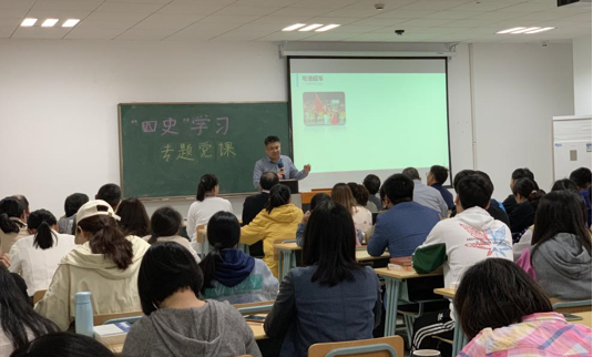 课堂上,师生党员聚精会神、心无旁骛,仔细听讲、认真记录,最后党课以全体党员同志共同观看《工业互联网打造第四次工业革命的基石》视频结束。蒋建军书记提出,此次党课历史脉络清晰,史料丰富详实,既有生动案例,又有思想启迪,全体党员同志要以此次“四史”学习教育为契机,继续学好“四史”,从历史中汲取精神力量、汲取经验智慧,坚持把立德树人作为根本任务。