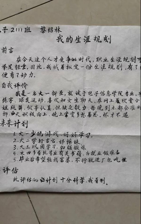 同学们试着为自己拟定了一份职业生涯规划