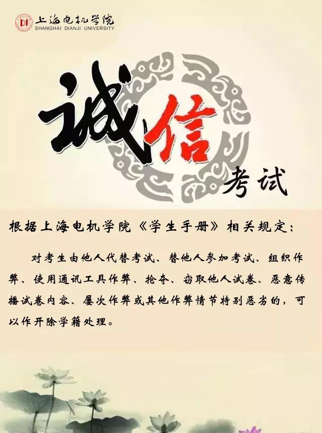 诚实守信是中华民族的优良传统,也是公民道德的基本要求。端正考试态度、诚信参考、坚决杜绝作弊行为,做一名文明诚信的老员工,展现电机优良学风。