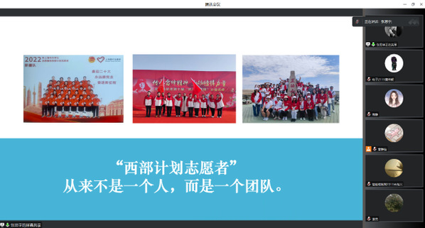 2023年是西部计划实施20周年,在这二十年的时间里,一批又一批的“西部计划”志愿者为建设中国特色社会主义现代化强国贡献力量。本次分享会让同学们对“西部计划”有了更加深入的了解,同时也呼吁同学们积极响应国家号召,到祖国最需要的地方去建功立业。学院将继续发挥好专业优势、持续做好基层就业宣传、动员和保障工作,引领更多信息学子逐梦西部,奉献青春。