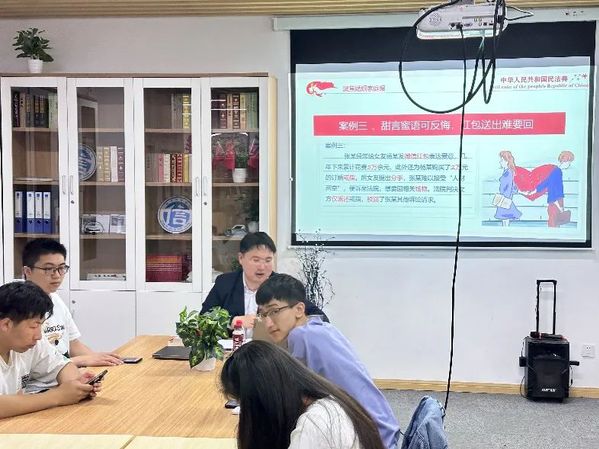 活动过程中,黄老师聚焦《中华人民共和国民法典》婚姻家庭编,提炼恋爱婚姻热点法律问题,以十个实际生动案例作为讲解载体,通过案情介绍与法条解读,围绕彩礼红包、恋爱协议、夫妻家事代理、夫妻共债共签、婚内分割夫妻共同财产请求权、离婚冷静期、孩子抚养权、诉讼离婚法定条件等常见法律问题,运用通俗易懂的方式,向在座同学进行了普法宣传。