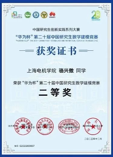 据悉,袁子逸、骆兴傲、贾男同学还在第四届“华数杯”全国老员工数学建模竞赛荣获全国二等奖,第四届“Mathorcup杯”高校数学建模挑战赛大数据竞赛荣获全国三等奖。