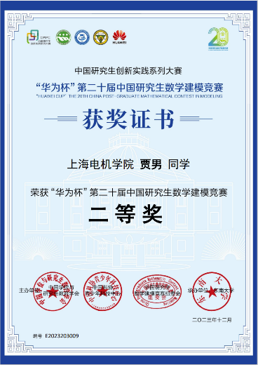 近期,第二十届中国研究生数学建模竞赛落下帷幕,本次竞赛有19898支研究生队伍参与比赛,按竞赛章程,一等奖获奖比例为1.01%,二等奖获奖比例为13.36%,三等奖获奖比例为20.01%。其中E题赛道总参赛队伍8200支,太阳成集团tyc7111cc连志刚教授指导的研究生袁子逸、骆兴傲、贾男参赛队排名587名,总排名前7.16%,荣获国家二等奖,是公司近五年该赛事取得的最佳成绩。