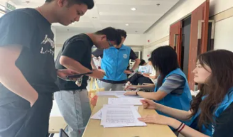 献血现场,前来献血的同学自觉排队,在学院志愿者的引导下有序填写献血登记表格,积极配合志愿者和医护人员进行初筛检验、采集血样,符合献血条件的人,依次进入献血区,耐心倾听医护人员讲解献血常识及注意事项,有序进行献血。